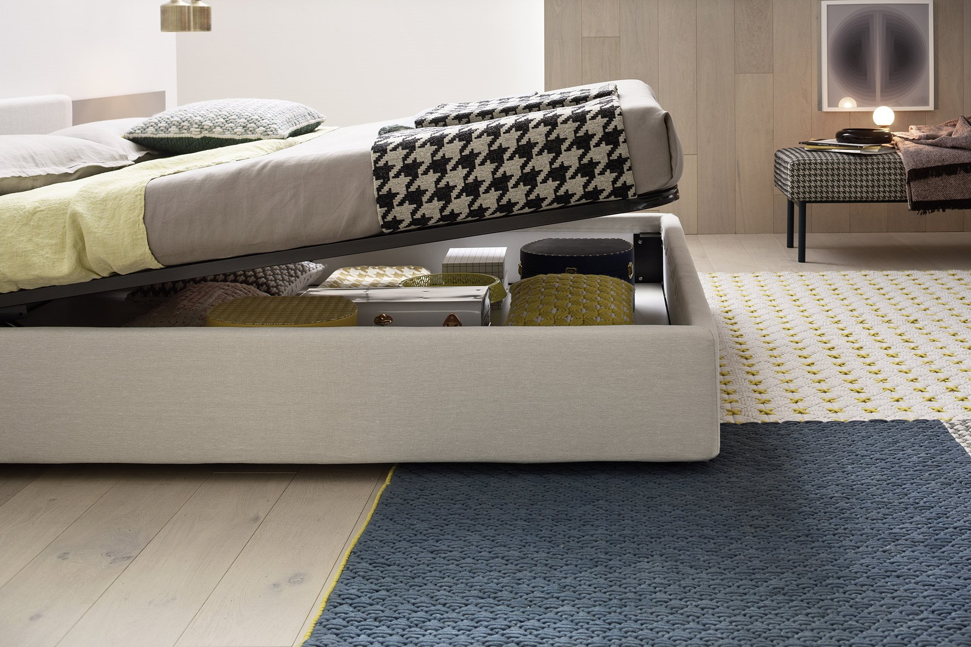 Bedombouw 'Modo' is verkrijgbaar in stof of leer en kan gecombineerd worden met een vlakke of (elektrisch) verstelbare lattenbodem of luxe inzetboxspring. Optioneel kan deze ombouw uitgevoerd worden met een opklapbare lattenbodem waardoor er opbergruimte onder het bed ontstaat.