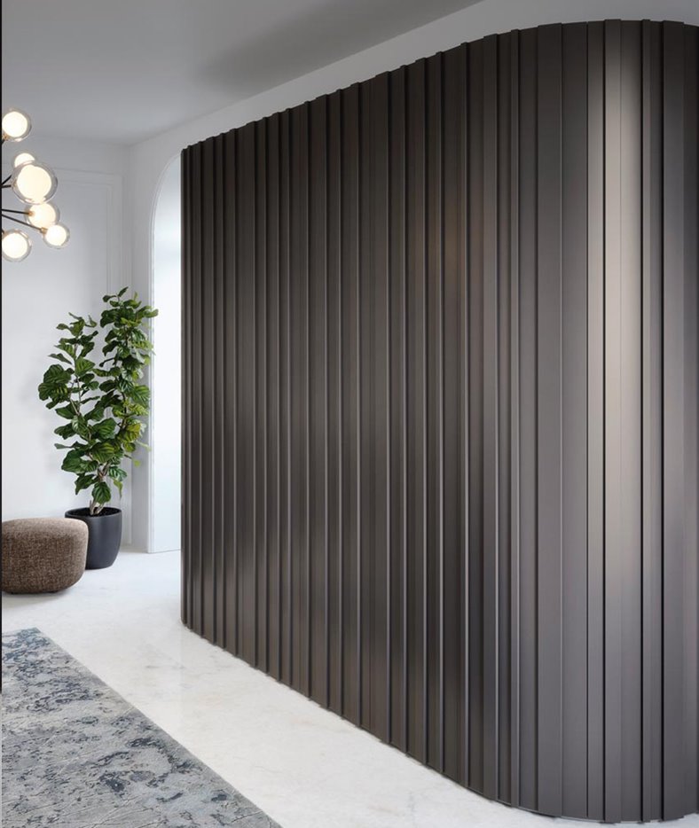 De Stave kledingkast met klapdeuren valt op door zijn exclusieve design, met decoratieve verticale panelen (in matlak of luxe houtfineer) op de klapdeuren met een push-to-open sluiting. Zonder handgrepen oogt de kast als een elegant wandpaneel, wat de Stave tevens ideaal maakt als kamerverdeler. Stave is leverbaar i.c.m. ronde 'Curve' kastmodules, een nis of zitje, tv-module, lades en open boekenkast.